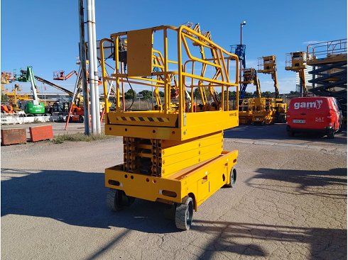 Plataforma tijera eléctrica HAULOTTE COMPACT 12. Altura de elevación 12 metros y capacidad de carga 300 Kg. Año de fabricación 2013.