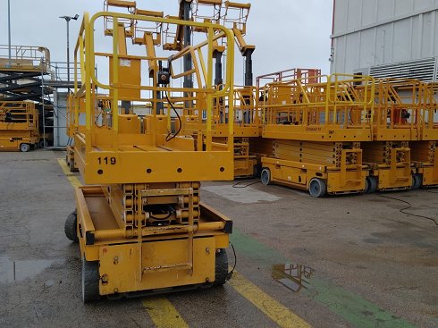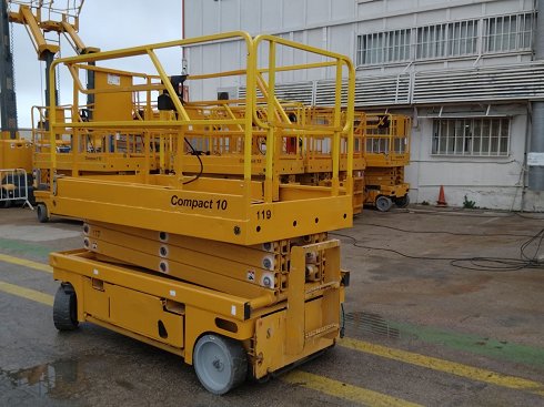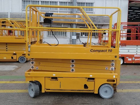 | Details | Plataforma tijera eléctrica HAULOTTE COMPACT 10 . Altura de elevación 10 metros y capacidad de carga 450 Kg. Año de fabricación 2011. Caracteristicas
