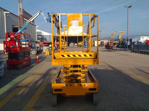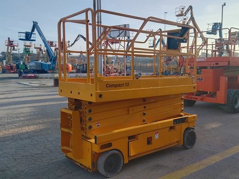 Plataforma tijera eléctrica HAULOTTE COMPACT 12. Altura de elevación 12 metros y capacidad de carga 300 Kg. Año de fabricación 2013.