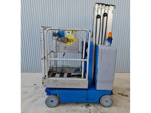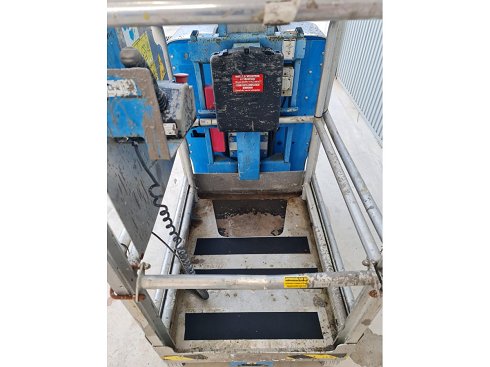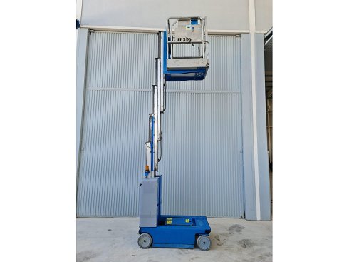 Plataforma unipersonal eléctrica GENIE GR-20. Altura de elevación 8 metros y capacidad de carga 159 Kg. Año de fabricación 2015.
