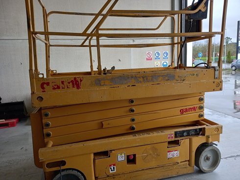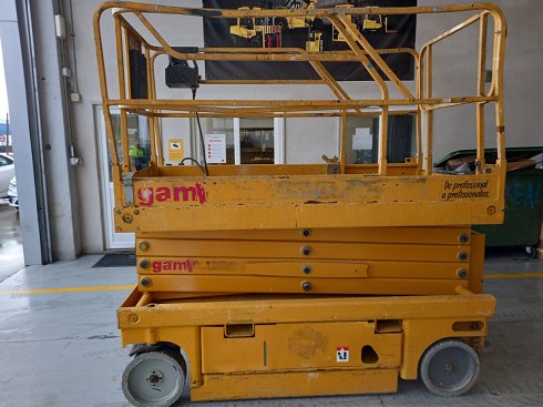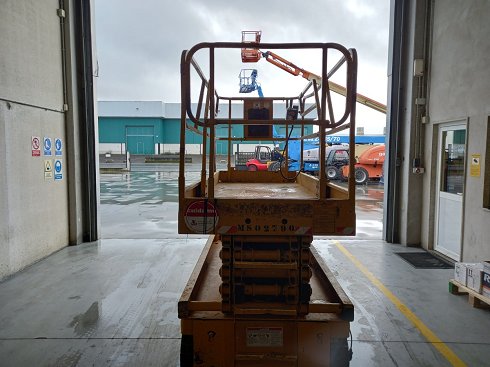 Plataforma tijera eléctrica HAULOTTE COMPACT 12. Altura de elevación 12 metros y capacidad de carga 300 Kg. Año de fabricación 2007.