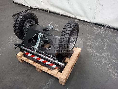 Este accesorio resulta especialmente útil en entornos donde el espacio es limitado o el terreno irregular, aprovechando la maniobrabilidad del multicargador y mejorando la estabilidad de la carga durante el transporte.