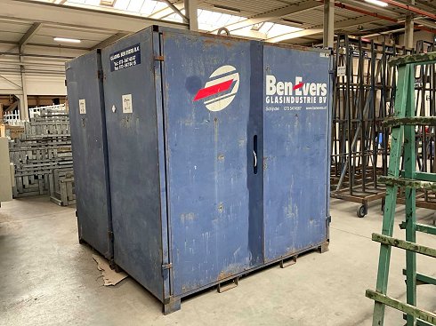Equipado con puente de cristal de 2100x1000x2000 mm, 2 puertas laterales, ranuras para la cuchara del carretón elevador, ojo elevado |