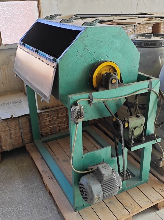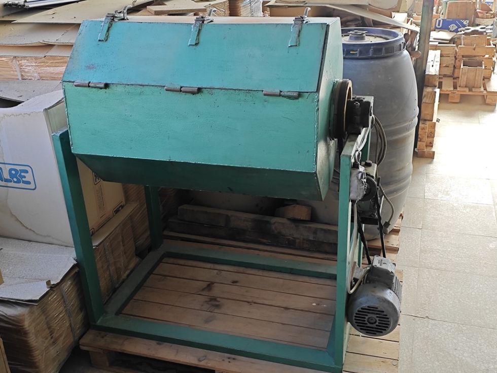 | Detalles | Bombo para desengrasado o granallado de piezas metálicas de gran capacidad. Puede emplearse con serrín para que absorba el aceite de las piezas metálicas o introducir las piezas metálicas para eliminar cantos vivos al chocar unas piezas con otras. |