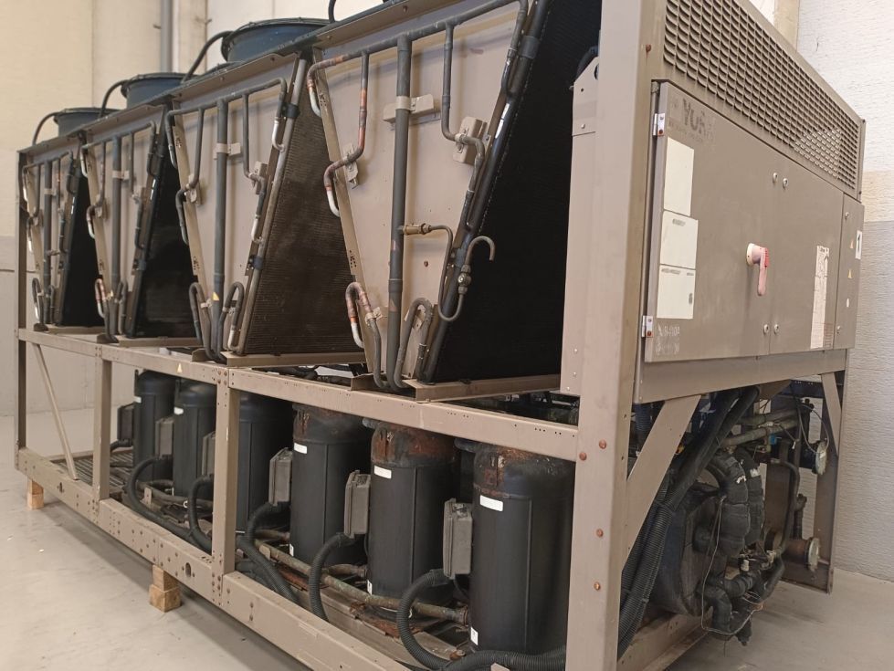 | Detalles | 1 York enfriadora de agua, modelo:YLAA0455 HE50XAA, 451 kw(387.860 frigorias) solo frio,Gas R-410A, con 2 circuitos, 6 compresores scroll, intercambiador de placas, 8 ventiladores axiales, dimensiones: 4807x2242x2393 mm, 3696 kgs, Equipo probados con toda su carga de gas completa, con garantia, envios a toda España Referencia : 1138 |