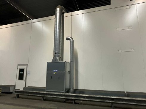 capacidad 2,78 m3/segundo; equipado con filtros; 400 voltios; 3 kW; incluyendo aproximadamente 4 metros de tubería pequeña hasta la primera curva; incluyendo aproximadamente 4 metros de tubería hasta la primera curva; incluyendo conductos de aire de aproximadamente 2500 y 3300 mm en la parte inferior izquierda y derecha junto a la instalación; tamaño de la carcasa 1330x1000x2500 mm; |