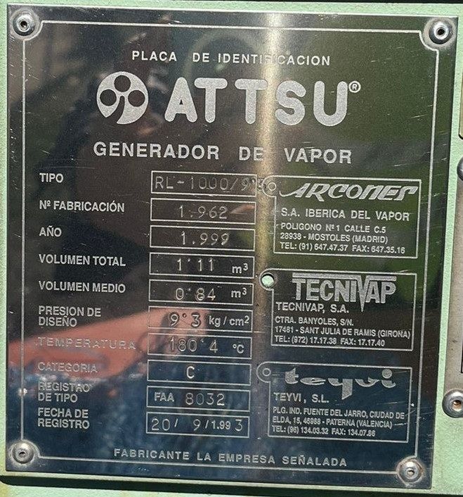 | Nombre | Caldera de vapor attsu rl-1000 con quemador cuenod 100 |