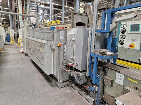 | Detalles | CONTROLS PLC SIEMENS S7 300 CHARACTERISTICS HEAT TREATMENT EQUIPMENT temperature max.: 1140 °C HEAT TREATMENT COMPARTMENT / ZONE length: 3636 mm Ancho: 300 mm Height: 15 mm DATOS DE CONEXIÓN ELÉCTRICOS Potencia de conexión: 173 kVA Aplicación: Producción de forros de fricción para embragues Sinterización de materiales en polvo de acero, cobre y latón sobre metal no ferroso/chapa de acero Enfriamiento en atmósfera libre de oxidación Uso para pequeñas series o planta piloto Diseño: Horno continuo con cinta transportadora con sección de calentamiento y enfriamiento Gas combustible: Gas natural Gas formador: H2, N2 Gases inertes/protectores: N2, argón Traducción realizada con la versión gratuita del traductor DeepL.com |