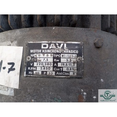 | Detalles | Motor de patas: 5,5 Kw (7,5 cv) marca: NAVI, a 2850 rpm, 220-380 V, eje: 38 mm. |