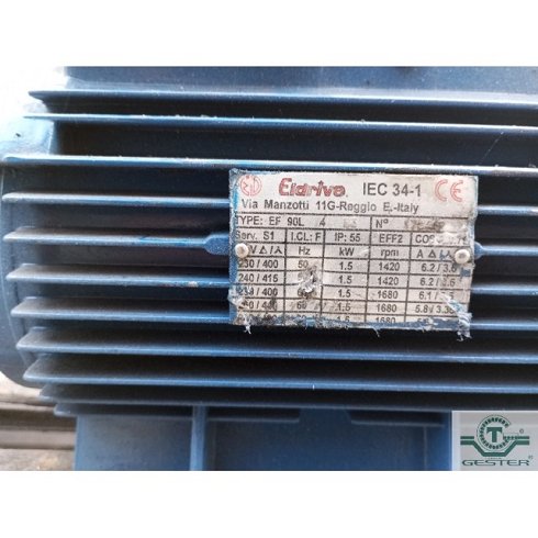 | Detalles | Motor de patas: 1,5 Kw (2 cv) marca: ELDRIVE, a 1420 rpm, 230-400 V. Eje: 25 mm. |