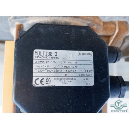 | Detalles | Bomba de agua inoxidable, marca: Espa, motor: 1.5 KW (2 CV), trifásica. |