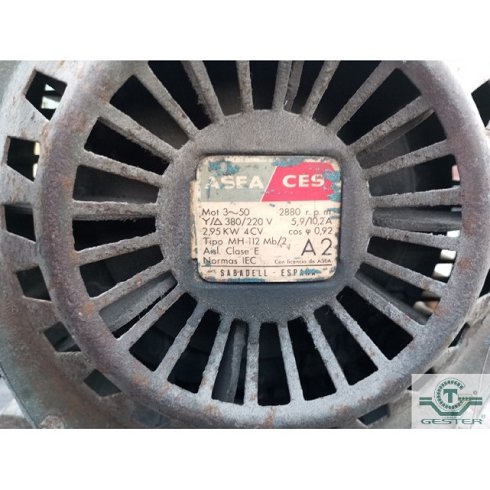 | Detalles | Motor de patas: 3 KW (4 CV), marca: Asea, a 2880 rpm, 220-380 V. Corriente alterna. |