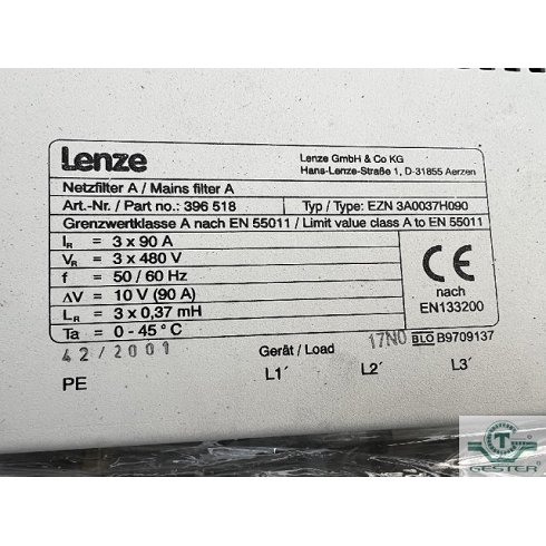 | Detalles | Variador de velocidad electrónico, nuevo, de corriente alterna (CA), marca: Lenze, modelo: EZN 3A0037H090, año: 2001. Potencia: 60 cv (45 kw) |