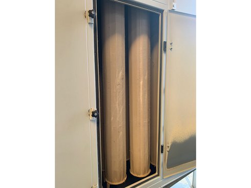 | Detalles | Technical characteristics Filter surface 47 m2Max. flow rate 9000 m3/h48 filter bags, length 2000 mm, diameter 150 mmPneumatic cleaning11 kW fanInlet/outlet diameter 350 mmPressure suctionAnti-explosion ventElectrical cabinet Power and Motors Voltage: 400 VPluging: Three-phased Overall dimensions Lenght: 2000 mmWidth: 1800 mmHeight: 4500 mm |