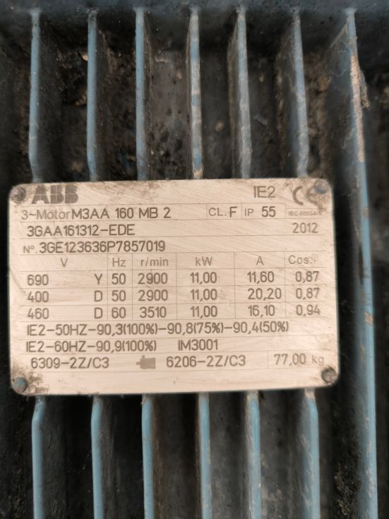ABB MOTORS 690/400 V 11,6/20,20 A 11 kW 50 Hz 2900 rpm