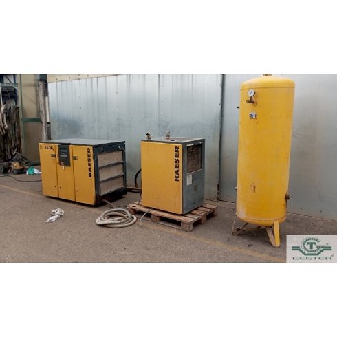 | Detalles | Compresor de aire de tornillo - Marca: KAESER - Modelo: AS36 - Año: 1999 - Potencia: 30 CV (22 kW) - Calderín: 500 ltrs. - 10 Bar - Con secador de aire Marca: KAESER, Modelo: TC36  |