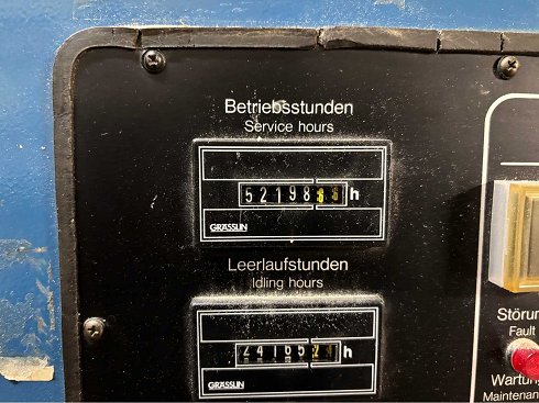 Máquina No. 11995, motor aprox. 22 KW, caudal volumétrico aprox. 2,85 m³/min., presión máx. aprox. 10 bar (El artículo está en condiciones existentes y sin probar. ¡El artículo se vende desde la fundación y sin contenido / material!) |