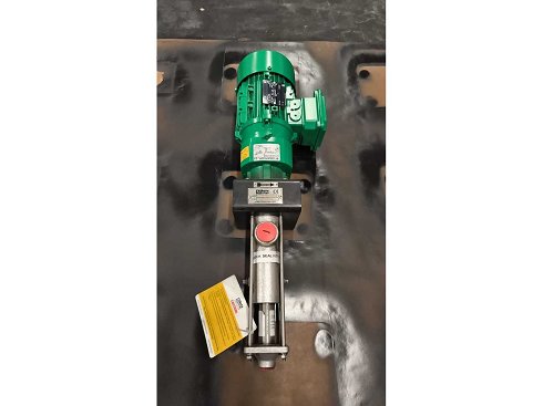tipo: Bomba de cavidad progresiva con motorreductor Material de construcción: - Cuerpo: acero inoxidable CF8M (ASTM A351) - Rotor: acero inoxidable AISI 316 - Estator: Viton - Eje: acero inoxidable AISI 316 - Tipo de sello: Mecánico simple, desequilibrado - Material de sellado: SiC / SiC / Viton con sello de aceite para lavado Sistema de accionamiento: - Motor: Motorreductor NORD - Potencia: 0,37 kW - Velocidad: 75–155 RPM (50 Hz) Conexiones: - Succión: rosca BSP de 1" - Descarga: rosca BSP de 1 1/2"