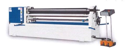 Características técnicas Longitud útil decurvado: 2.050mm Diámetro de eje superior: 170mm Espesor dematerial a pre-curvar: 5mm Espesor de material a curvar: 6mm Diámetro mínimo de curva obtenible: 255mm Potencia motor: 4kw Largo: 3.850mm Ancho :720mm Alto: 1.050mm Peso: 2.100kgs Sistema de curvado asimétrico: |