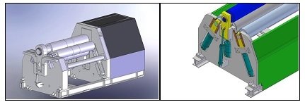 - ESTRUCTURA: Bastidor de construcción pesada en acero soldado, distensionado térmicamente. La gama de cilindros 4RHSS es uno de los más pesados del mercado debido a que el cuerpo utilizado que lleva los rodillos se fabrica muy duro y el bloque interior tiene piezas electrosoldadas de apoyo al cuerpo contra el que se produce la fuerza durante el proceso de doblado.