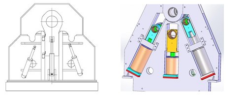 - Pistones Largos:Los pistones se utilizan en diámetros más grandes con el fin de hacer un mejor pre-curvado para los rodillos laterales. De este modo se puede doblar la placa 30% más gruesa con un diámetro de curvatura más pequeño.