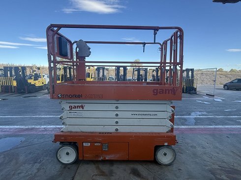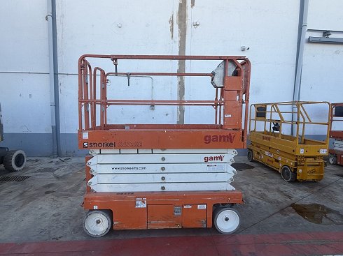 | Details | Plataforma tijera eléctrica SNORKEL S4732E. Altura de elevación 12 metros y capacidad de carga 350 Kg. Año de fabricación 2018. Caracteristicas