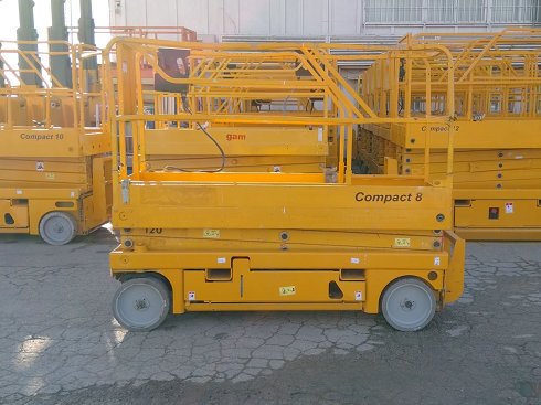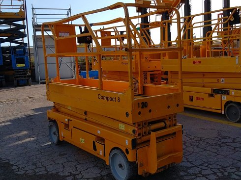 Plataforma tijera eléctrica HAULOTTE COMPACT 8. Altura de elevación 8 metros. Capacidad de carga 350 Kg. Año de fabricación 2011.