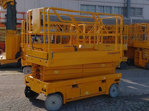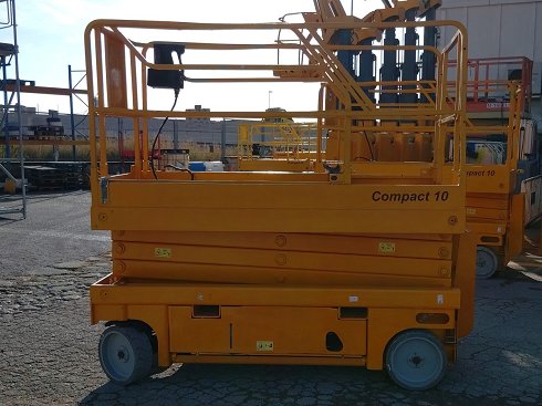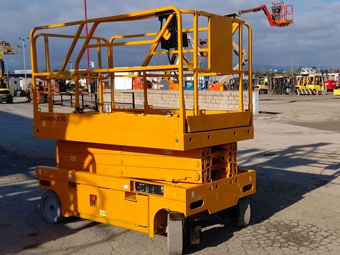 Plataforma tijera eléctrica HAULOTTE COMPACT 10 . Altura de elevación 10 metros y capacidad de carga 450 Kg. Año de fabricación 2011.