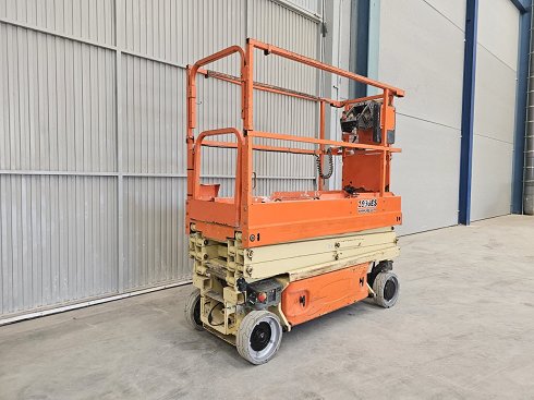 Plataforma tijera eléctrica JLG 1930ES. Altura de elevación 8 metros. Capacidad de carga 230 Kg. Año de fabricación 2016.