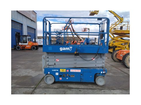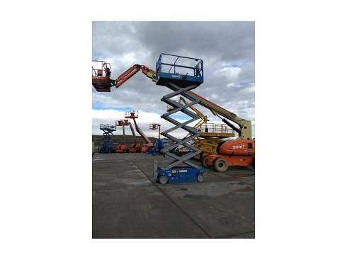 | Details | Plataforma tijera eléctrica GENIE GS-3246. Altura de elevación 12 metros y capacidad de carga 318 Kg. Año de fabricación 2015. Caracteristicas