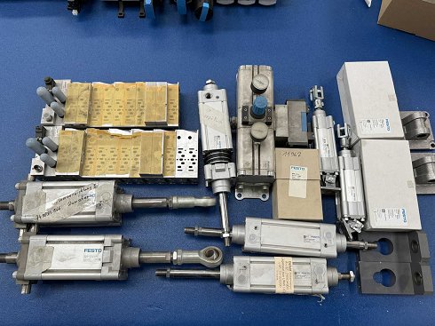 Varios cilindros neumáticos, hacen Festo, varias válvulas hacen NORGREN, para más detalles véanse las fotos