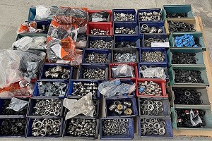 3 paletas de tornillos y tuercas