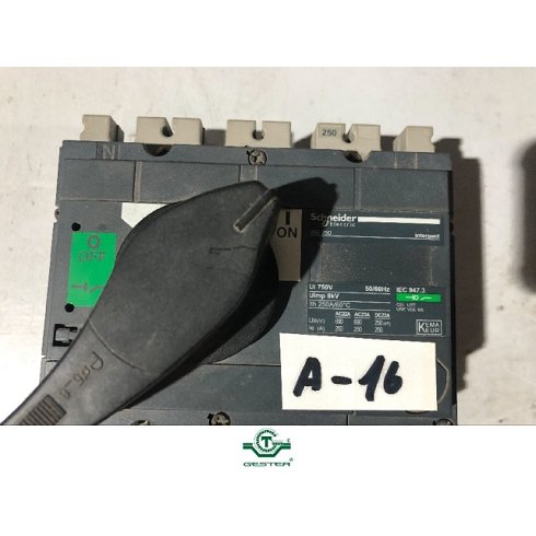 | Detalles | Interruptor general Marca: SCHNEIDER, modelo: INS-250, potencia: 250 Amp., 3 Polos + Neutro. |