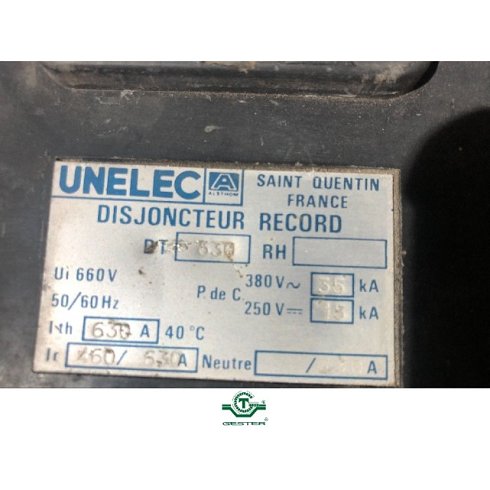 DetailsInterruptor automático general Marca: Unelec, modelo: DT-630, potencia: 630 Amp, 3 Polos+ neutro.