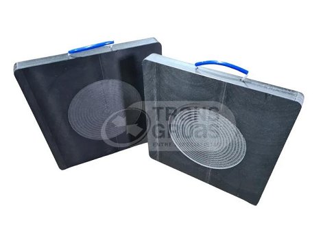 En venta de placas de apoyo para estabilizadores de grúas hidráulicas: ligeras y muy resistentes, protegen el suelo donde se apoya el gato y aumentan la estabilidad de la grúa. Estas son placas de apoyo planas con capacidad de carga de 29 Tn. y pesan sólo 11.5 Kg. Lo mejor des estas placas, sin duda, su percio, no dudes en consultarnos.