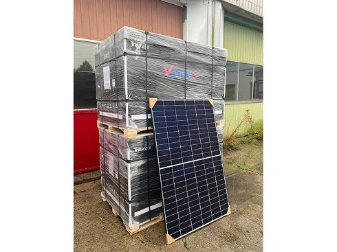Paneles solares nuevos. Permeabilidad de hasta 450W, excelente resistencia al fuego y, en condiciones ambientales difíciles, carga de nieve de 5.400 Pa y carga de viento de 4.000 Pa (cargas de prueba). Menores costes de instalación con mayor potencia y eficiencia. Rendimiento máximo Potencia nominal total por paleta con 66 módulos PV: 29.700 Wp / 29,70 KWp Detalles técnicos: Tipo: monocristalino. Estado: nuevo en fábrica Eficiencia por módulo solar: 22,5%. Potencia por módulo solar: 450 Wp. Potencia total: aprox. 29.700 Wp / 29,70 kWh. Dimensiones módulo PV: 1.762 x 1134 x 30 mm. Peso: aprox. 22 kg. Número de unidades: 66 piezas. Datos logísticos: Número de palés: 2 Dimensiones de los palés: aprox. 1.800 x 1.200 x 1.500 mm. Peso: aprox. 1.600 kg