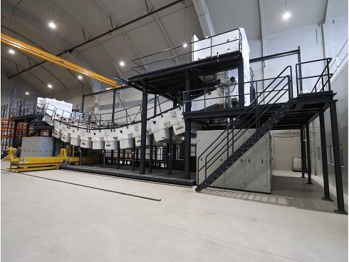 Línea de pulverización multicámara de magnetrón DC diseñada para la deposición de película delgada rollo a rollo, que consiste en: 6x cámara de proceso de magnetrón DC tipo RDM 1800 L (2009), 2x cámara intermedia, 1x cámara de refrigeración, 1x cámara de rebobinado, 1 sala de desenrollado, 21x bomba turbomolecular tipo HiPace 2300 U (2009), parcialmente con controlador integrado tipo TC 1200, 2x unidad de control de temperatura "Single" (2009), 6x generador HF "Trumpf" tipo TruPlasma DC 3040, 1x armario de conmutadores de corriente principal, 2x intercambiador de calor tipo "Seifert" tipo RK-2114 AM (2009), 1x unidad de refrigeración "Carrier" (exterior) tipo 3ORBO0342 refrigerante R14A (2009), 2x unidad de vacío "Leybold" SV630 B (2009) y 1x unidad de vacío "Leybold" tipo D40 B y 1x tipo SV630 B (2009) en carcasas insonorizadas, diversos elementos de transporte, Superficie utilizada aproximadamente 27,500x12,500 mm |