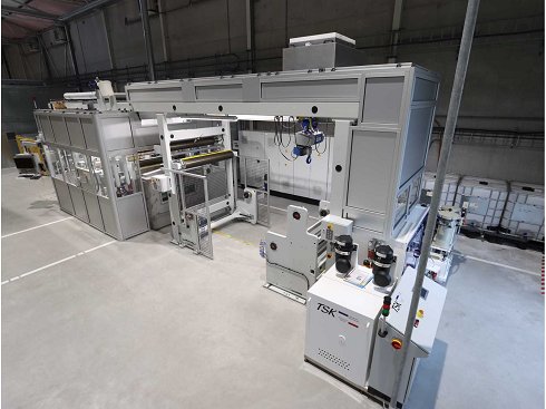 Tipo LAMB 1400, 2 capas, presión de laminación 4-6N/cm, temperatura de laminación 30-80°C, peso de recubrimiento 3-5g/m2, velocidad de producción 1m/min, compuesto por 3x bobinador, 1x unidad de cepillado "TSK LIA" (2023) s/n 1311, unidad de limpieza húmeda horizontal, 3x IBC para agua desmineralizada, 1x unidad de tratamiento de agua, grúa aérea con capacidad de polipastos eléctricos de cadena 2000Kg, 1x unidad de calefacción/refrigeración "Technotrans" tipo Teco TT 140.27.058, capacidad nominal de calefacción/refrigeración 27/200kW (2022), 1- Unidad de calefacción/refrigeración "Technotrans" tipo Teco WTD 150.09.25 capacidad nominal de calefacción/refrigeración 9/600kW (2022) 1x mueble de manipulación de aire, 1x armario de interruptores de 7 puertas. Superficie útil aproximadamente 13,000x7100mm