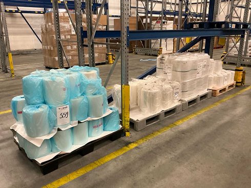 380 mm, 52 my, 30 rollos, incluyendo varios rollos de película, en total en 4 palets |
