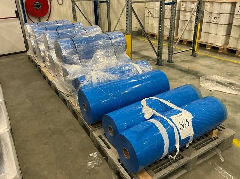 Azul/transparente, ancho 10¹¹ mm, rollo de 1300 metros, aprox. 15 rollos, sobre 6 paletas |