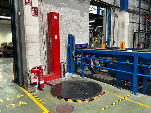 Envoltor de palés EAR FLAP 300-V (2004) Envoltorio de lámina elástica para paletes para palés para envolver cargas paletizadas con película elástica. Modelo: 300-V, Fabricante: Pack Solution, S.L. (España). Adecuado para asegurar y estabilizar palés en operaciones de envío y almacenes. Dimensiones totales aproximadas (L x Anla x Ar): 2400 x 1650 x 2700 mm Funcionalidad no probada. Este artículo se entrega cargado en camión. Los costes de desmantelamiento y carga se especifican como costes adicionales.