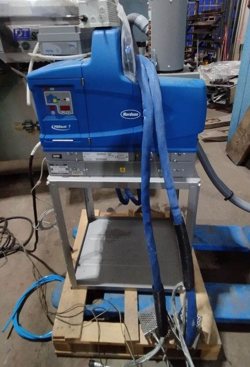 Encolador NORDSON modelo PROBLUE 7. Equipo completo con lanzas y accesorios. Montado sobre mesa de metal.