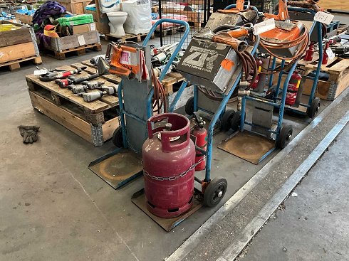 incluyendo 2 pistolas encogedoras Ripack; 2 carros tubulares de acero para cilindros de gas; cilindro de gas y extintor; |