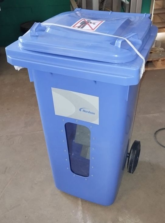 | Detalles | Encolador NORDSON PROBLUE 7 con KIT FILFULL completamente NUEVO SIN ESTRENAR. Dispone de las mangueras, lanzas y aplicadores. Contenedor de almacenamiento de granza o pellet de adhesivo. |