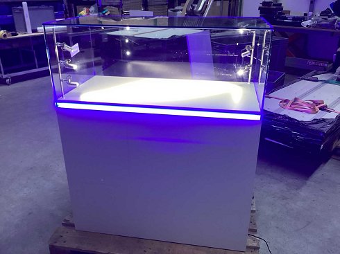 | Nombre | Vitrina / vitrina iluminada en blanco con accesorio de cristal |