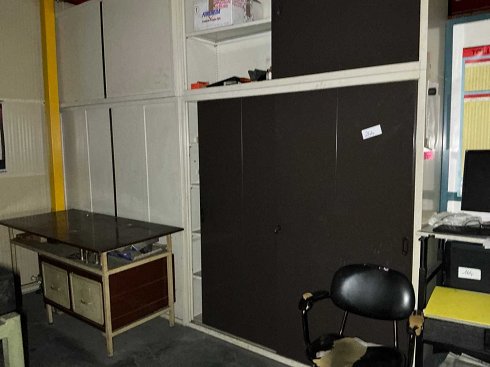Consta de un armario de documentos, un armario de taller, un escritorio y un banquete |