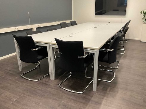 compuesta por (5x) mesa de conferencias; Tenue. aprox. 180x90 cm; (11 veces) presidente de conferencia; incluyendo pizarra blanca y maceta