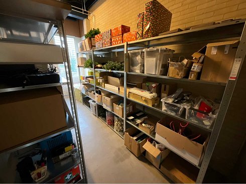 Consta de: impresora de tarjetas Zebra ZC100, estantería Schulte con 5 secciones H200xB130xD64cm, teclados, teléfonos VoIP, decoración navideña, etc |