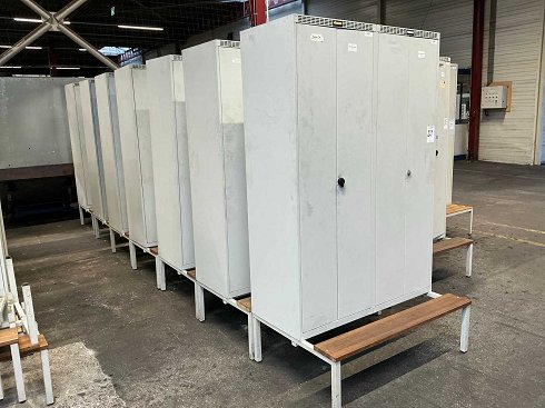 Consiste en 7 armarios (120x50x174cm) con 2 partes con parte colgante/estantería, bloqueable, banco / base (120x80x37cm) |