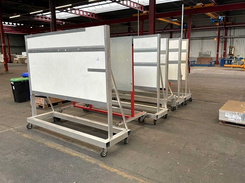 5 pizarras móviles con dimensiones: (235cm x 70cm x 210cm), 1x placa móvil de aluminio con dimensiones: (210cm x 205cm x 105cm) |